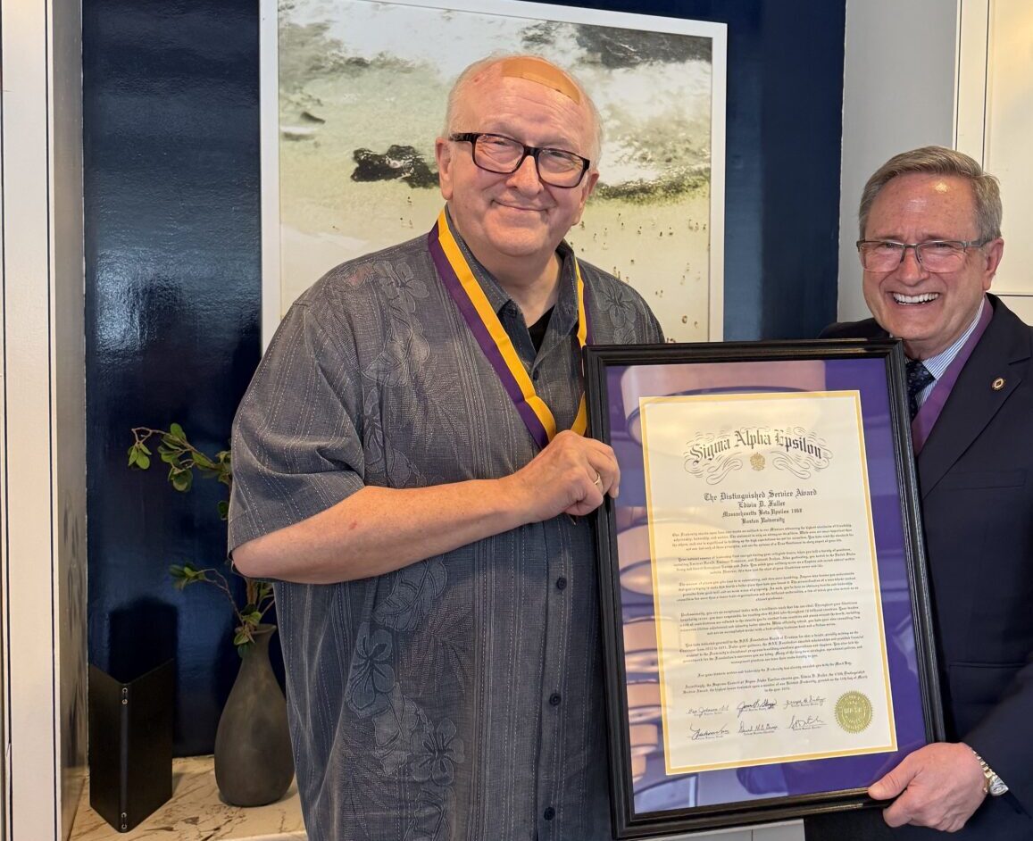 In recognition of nearly fifty-eight years of steadfast dedication and faithful service to Sigma Alpha Epsilon, Fuller was formally presented with the award on March 14th, 2026, during a small gathering in Orange County at the Montage Resort. The recognition was made even more meaningful by the timing of the celebration. The day of the presentation also happened to be Fuller’s birthday, providing a fitting moment to celebrate a life generously devoted to service and the good of others.