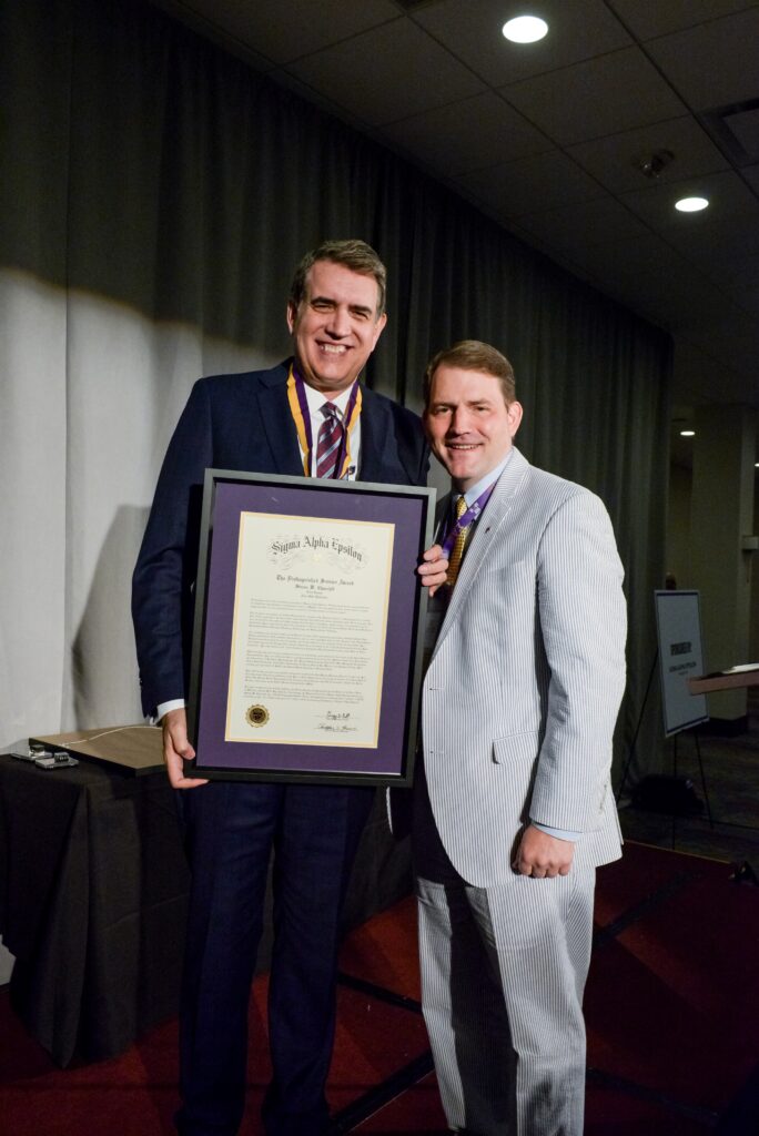 The Fraternity has 345,000+ initiated members; only 148 have been recognized with the Distinguished Service Award. Steven W. Churchill (Iowa State ‘85) is one of the most recent recipients, which was presented to him during the 165th Anniversary Convention of Sigma Alpha Epsilon in Des Moines, Iowa on July 17, 2021.