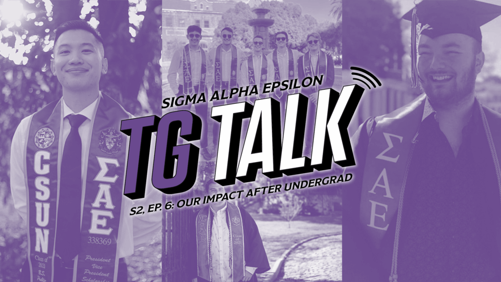 TG Talk is brought to you by the Sigma Alpha Epsilon Foundation and Fraternity and is an opportunity to engage with staff, volunteers, undergraduates, and notable alumni. Join us for discussions on all things SAE, including chapter operations, alumni engagement, university relations, ritual, and values. Additionally, TG Talk is a speaker series. We feature guest speakers focusing on leadership, professional development, and current events. As True Gentlemen, we must always strive to rise above. One of the ways we do that is by continuously learning.