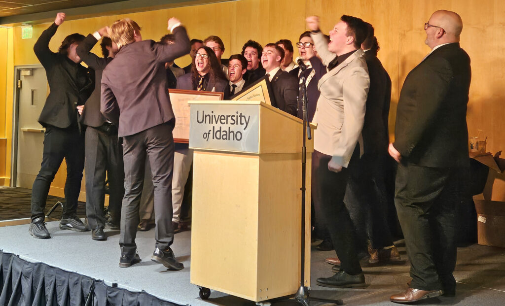 Our new SAE brothers like to sing traditional Idaho Alpha songs and are quite good at it thanks to Rick Carr (Idaho ’67) and the chapter song leader Caleb Staab (Idaho ’24).
